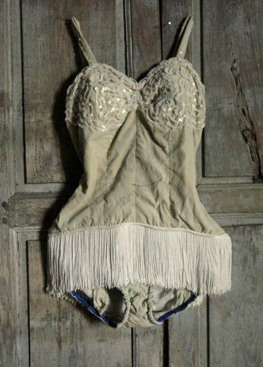 Bunny’s costume was very exciting to me. Bunny as a character is elusive, she is a perfectionist in her craft and a dedicated performer. I knew her look had to be spectacular. For her costume, I wanted to have a velvet leotard as the base. While researching, I saw a lot of circus performer costumes with tassels attached to the leotards as skirts (like pictures 1 and 2 below). I thought it would be fun to use tiny glass beads instead of tassels!