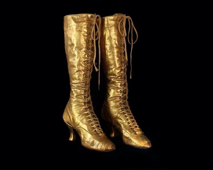 Here I am sewing them on, 4 hours turned into 40 seconds. They added lots of wonderful movement to her performance, however if I were to do it again I would definitely wire each strand of beads- so that I could animate them when she swings on the trapeze. Her boots were inspired by 19th century trapeze/ aerial boots (similar to those in picture 3) and are perhaps my favorite element of her entire ensemble.