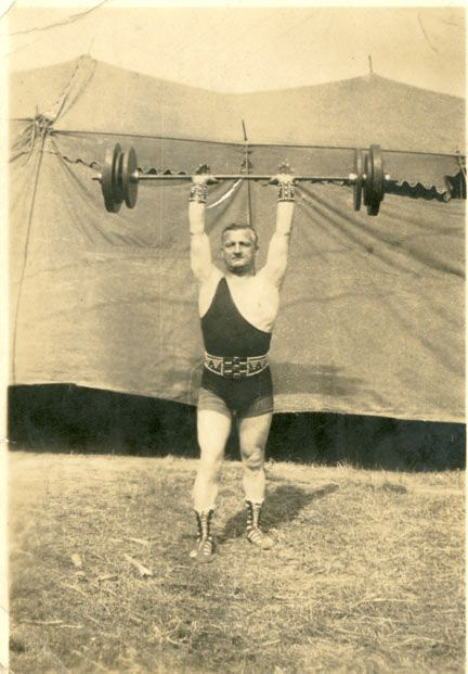 As the troupe’s ‘Strongman’ I already knew I wanted to give Ram a classic early 19th century male circus leotard (picture 1 & 3). I love the exaggerated silhouette it gives and how it immediately identifies him as the ‘Strongman’. Ram is a pretty straightforward guy and so is his costume. The beauty lies really in the fit being perfectly skin tight. After a few versions, I finally achieved the right fit. While researching, I noticed that these ‘Strongman’ performers often wore belts with their leotards. These belts were usually thick and had metal details (picture 2). The thickness and weight of these belts were not just stylish- they helped the performers maintain the proper posture while weightlifting. I used a navy cord and some brass grommet backings for his belt which contrasted nicely with his orange leotard.